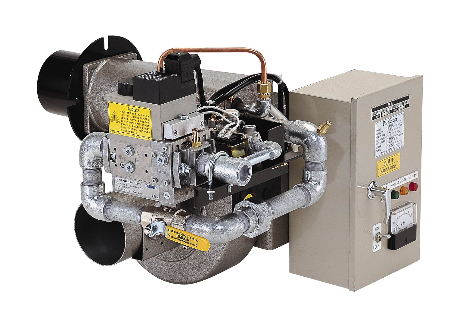 KGシリーズよりさらに安定した燃焼性を求めて、すべての構造を見直した新設計の <FKシリーズ>。ハイブレードファンの採用で、炉内圧が高い設備にも対応します。燃焼性能の向上だけでなく、メンテナンス性にも配慮した配管構造は、ガンタイプでありながら燃焼ヘッドの引き抜きが可能であり、整備・点検時の分解を容易に行うことができます。(メンテナンスは弊社にご連絡ください)Lo-Hi制御はパイロット+メインの切替えによる「WEM仕様」と、パイロット+メイン2段階を切替える「WEM2仕様」があります。(どちらもダンパーモーターを使用)すべての機器をコンパクトにまとめた上、上下逆転タイプ(R仕様)の製作も可能ですので、取付けスペースが充分に確保できない場所でもメンテナンス性を保って設置することが可能になります。