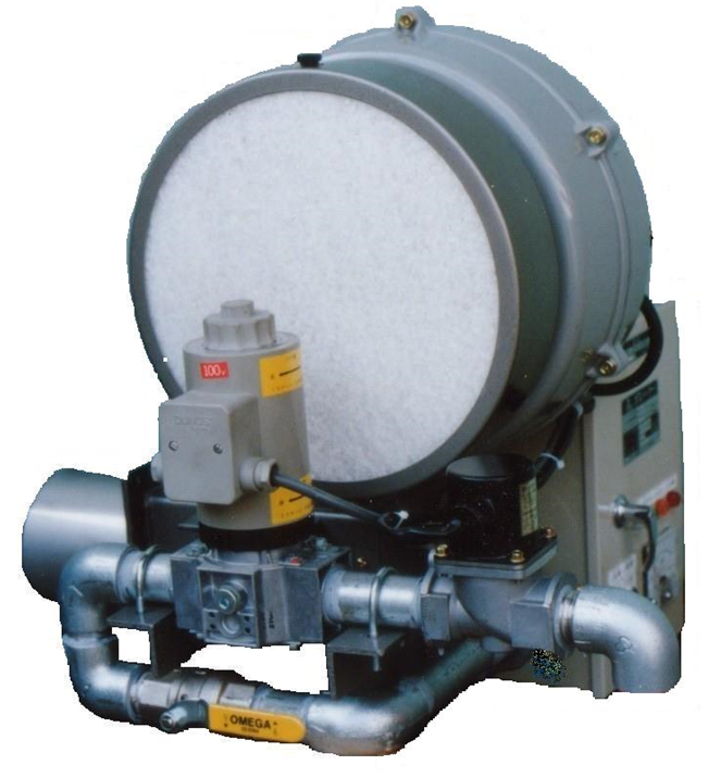 炉内圧の高い設備に対応するため、高風圧ターボブロアを搭載しそれにマッチした燃焼ヘッド構造を設計しました。エアーフィルターを標準装備していますので、ホコリなど設置場所の雰囲気が悪い環境でもご使用頂けます。外観は <KGSIシリーズ> と同様、整備・点検などのメンテナンス性を配慮したコンパクトなパッケージタイプになっております。(メンテナンスは弊社にご連絡ください)